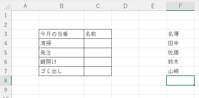 名簿は別のシートでもやる事は同じになりますが今回は横並びに作成しました。