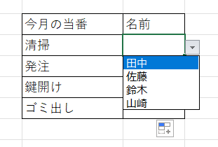 選択したセルの横にグレーのボックスが出現し、クリックしてドロップダウンリストが表示されれば成功です。
