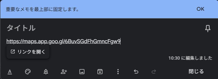 今回はリンクの共有が簡単なGoogleキープ(メモ帳)を使用します。