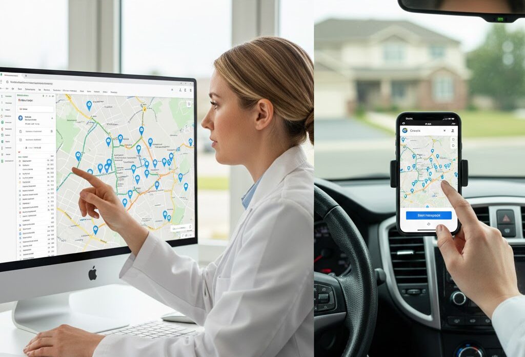 訪問件数が多くなると、どの順番で回れば最も効率的か(最短時間で回れるか)を正確に計算し、最適化することは、Googleマップなどの汎用ツールだけで完全無料で行うのは非常に困難です。