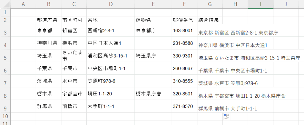 顧客リストや名簿を扱う際、「都道府県」「市区町村」「番地」がバラバラのセルに入力されていて、「一つのセルにきれいな住所としてまとめたい」と悩んだことはありませんか?