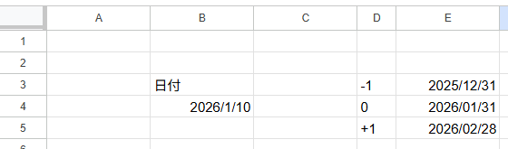 実際にB4セルの日付について月にそれぞれの数字を入力すると前後の月の末日を表示してくれます。