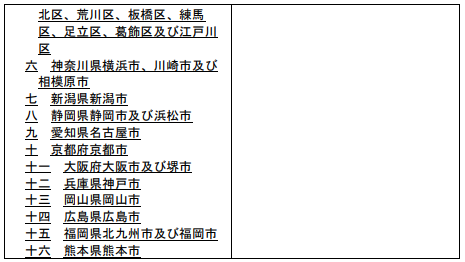 対象の都市部の抜粋。東京23区と政令指定都市(P722
